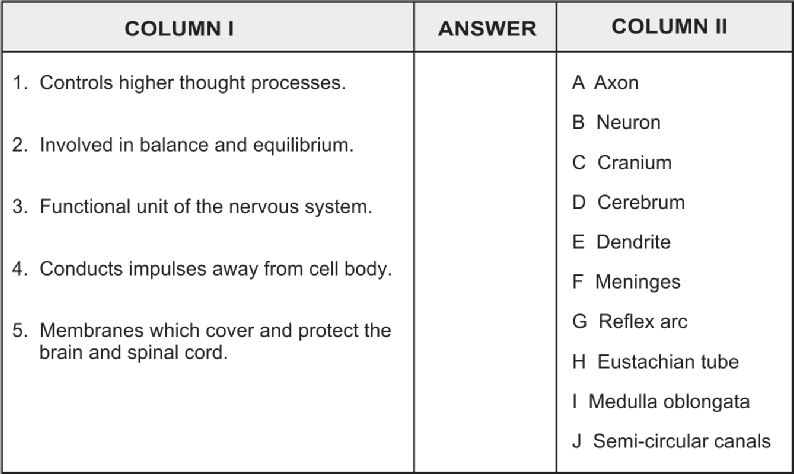 For each of the descriptions listed in Column I, select the most appropriate term in Column II.